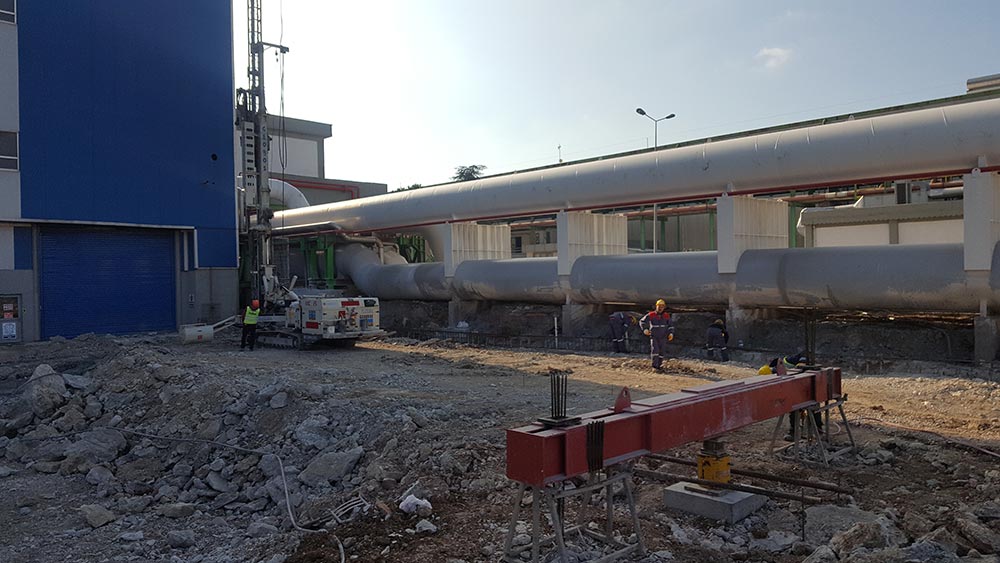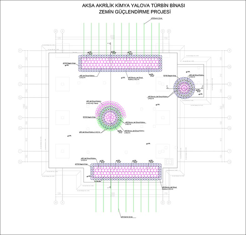 Soil improvement projects have been prepared for the Polymer Tank, Turbine, Tow Press and Autoclave buildings at the plant owned by Aksa Akrilik Kimya A.S, in Yalova. Within the scope of the projects, a total of ø60 cm - ø80 cm - ø100 cm unreinforced and ø40 cm reinforced jet grout and deep soil mixing columns have been constructed. Approximately 15.000 m jet grout and 2.200 m deep soil mixing columns have been constructed in total.