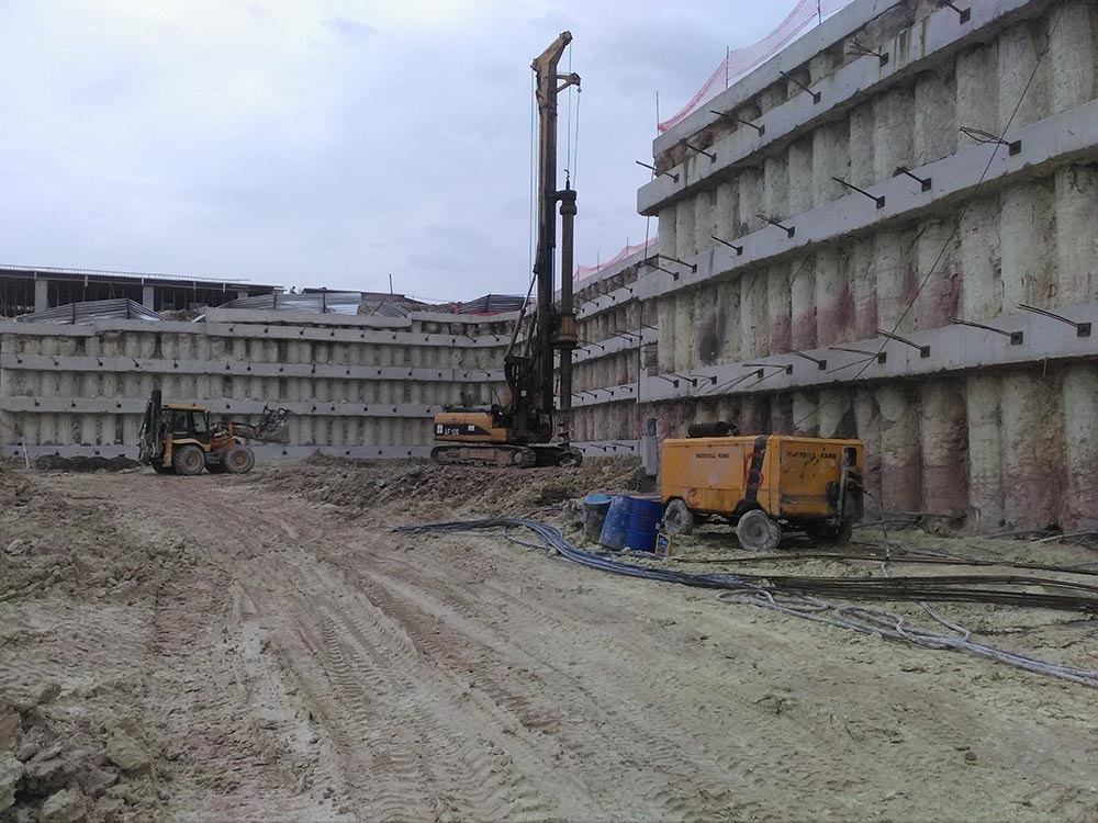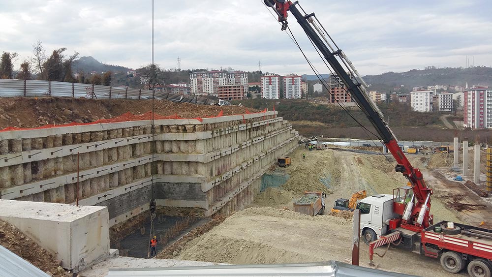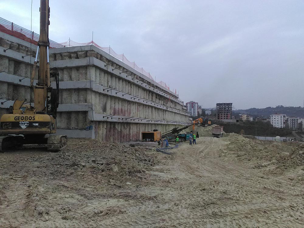 Within the scope of BIM Giresun Piraziz Warehouse Construction Project, a total of 3.515 m bored piles (ø80 cm) and a total of 9.350 m prestressed anchorage have been constructed.