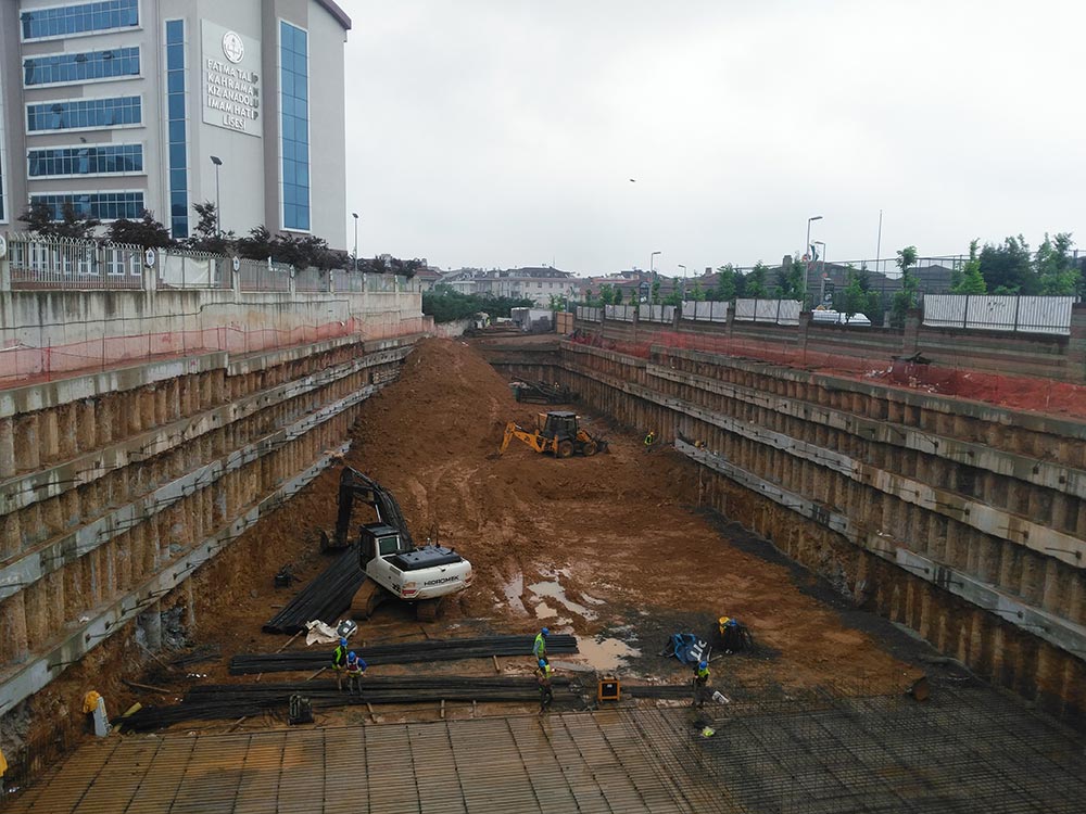In the File Cekmekoy Warehouse Construction Project a total of 3.200 m ø65 cm bored piles and a total of 5.680 m prestressed anchorage have been constructed.