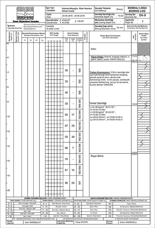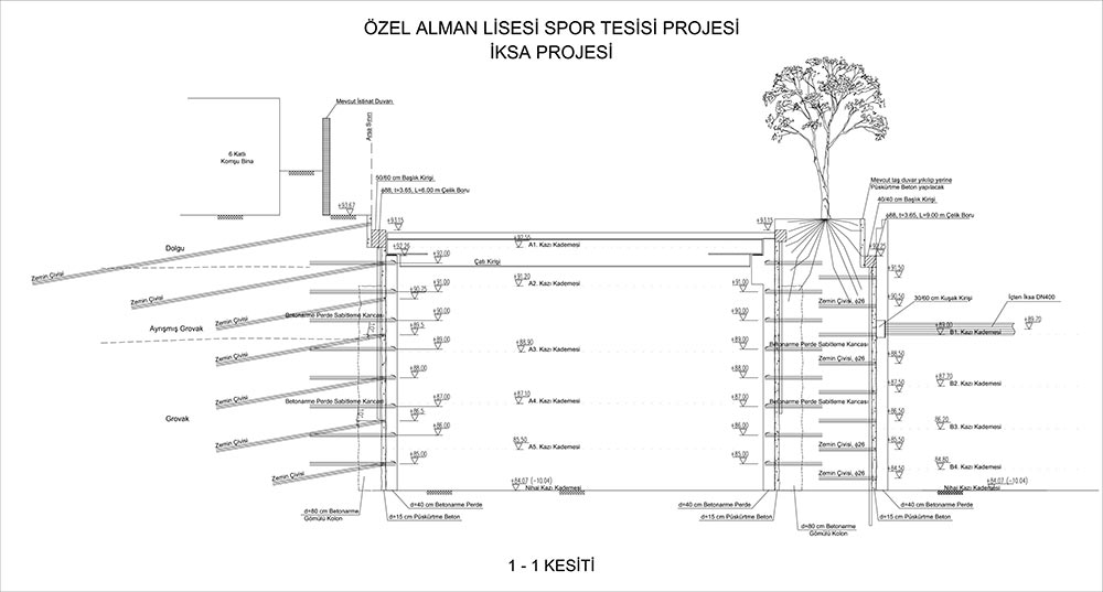 A geotechnical investigation has been carried out and a shoring project has been prepared for Ozel Alman Lisesi Gymnasium Project, in Istanbul, Beyoglu. Within the scope of the investigation, 8 drillings of 100 m in total, a pressiometer test, georadar and geophysical works have been carried out. A shoring project has been prepared for excavations of almost 10 m.
