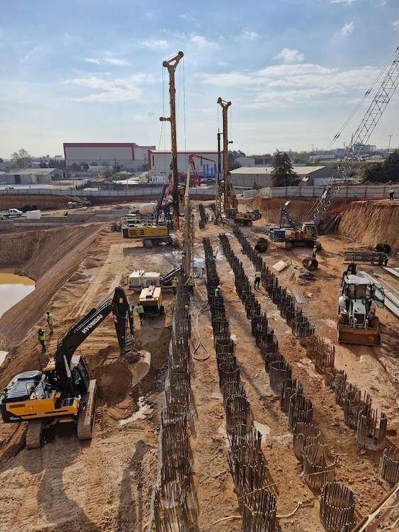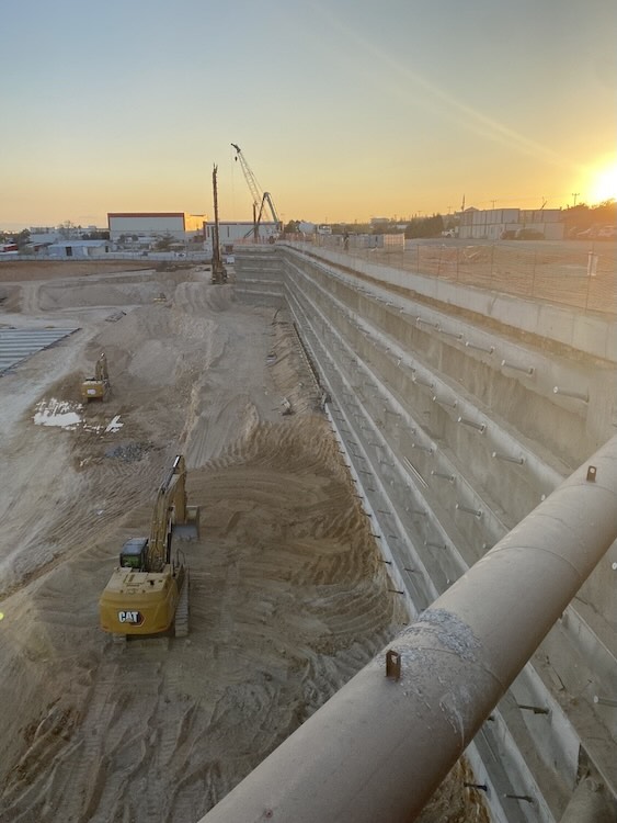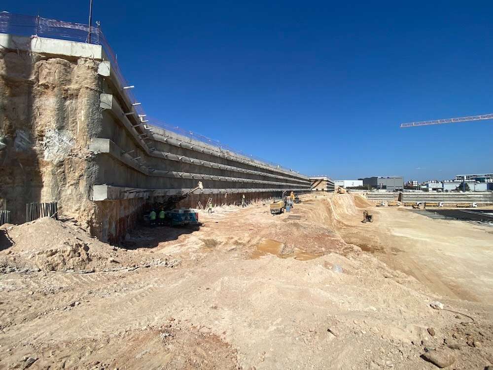 Derin kazı güvenliğini sağlamak için kritik bölgelerde çelik boru destekler (strut) ile rijitlik artırılmış, kazı yüzeyleri ise püskürtme beton ile kaplanarak şev stabilitesi ve saha güvenliği teknik şartnamelere uygun olarak sağlanmıştır.