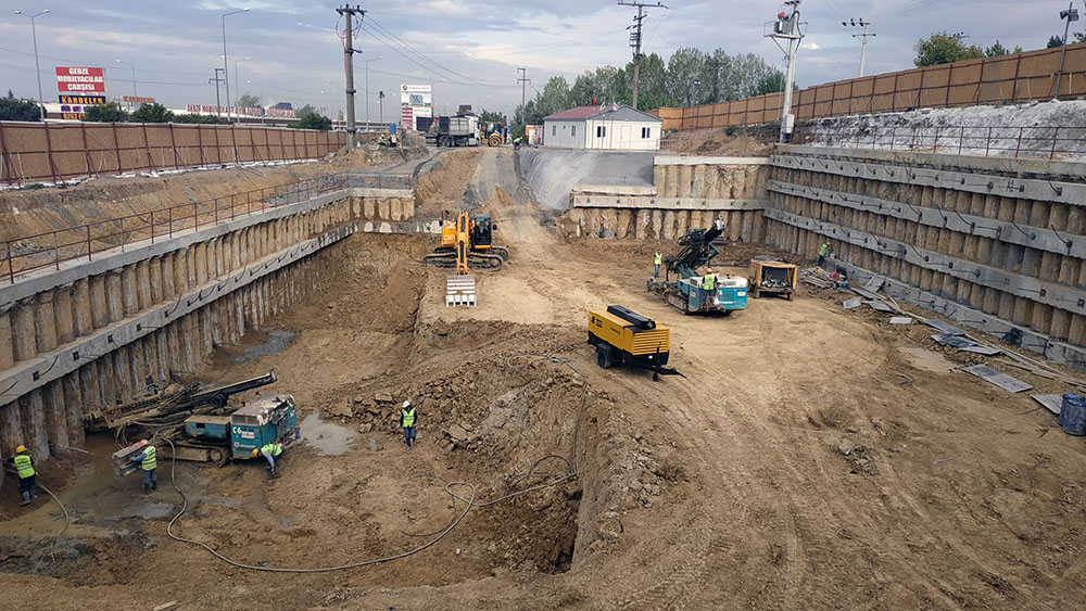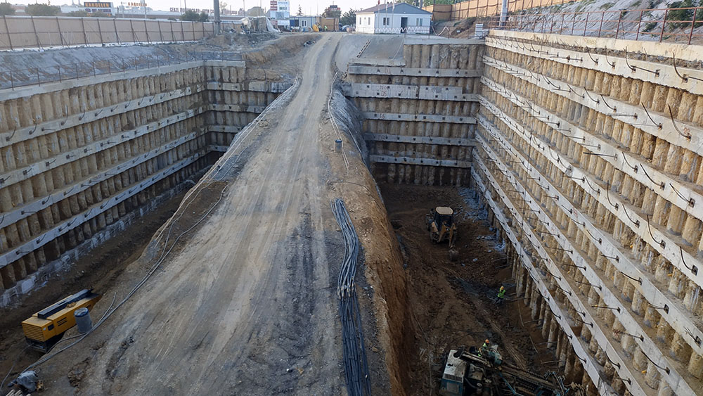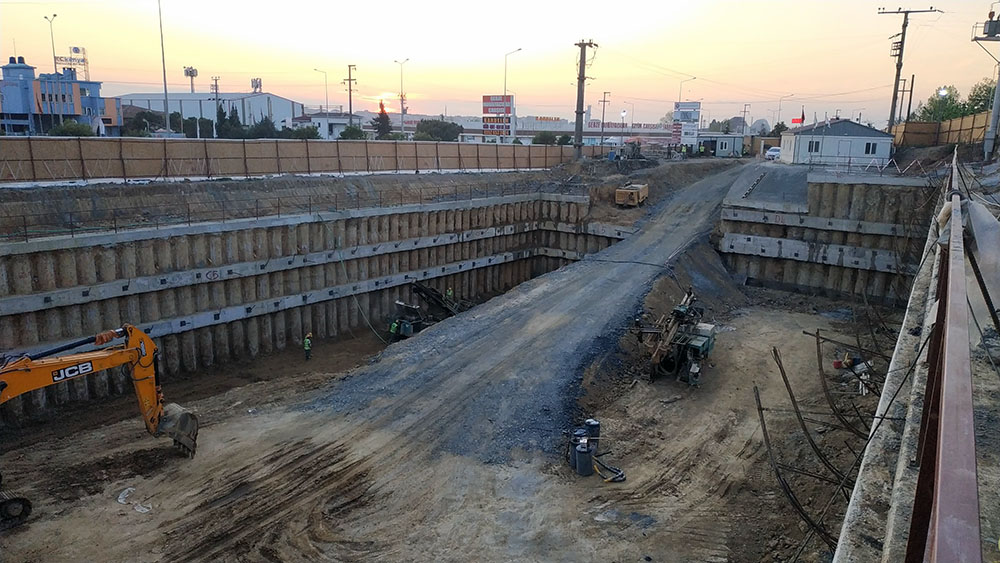 İlgili sahanın iksa projesi firmamız tarafından hazırlanmıştır. Kazı yüksekliği maksimum 21 m'yi bulan iksa projesinde; geçici iksa amaçlı 4.000 m ø80 cm ve ø100 cm çapında fore kazık, 11.000 m geçici ön germeli ankraj taahhüdü gerçekleştirilmiştir.