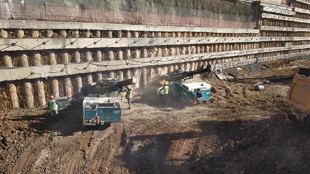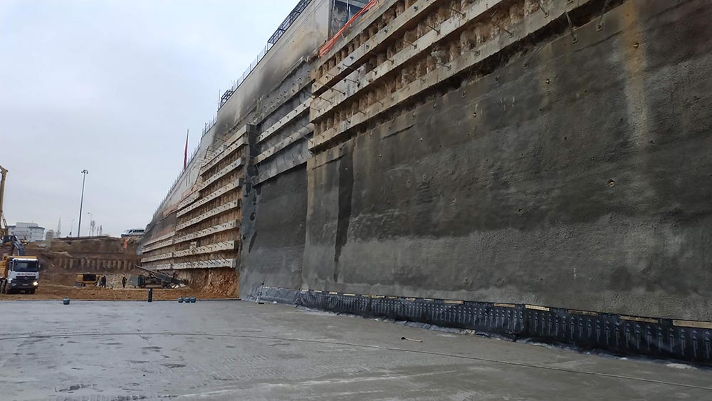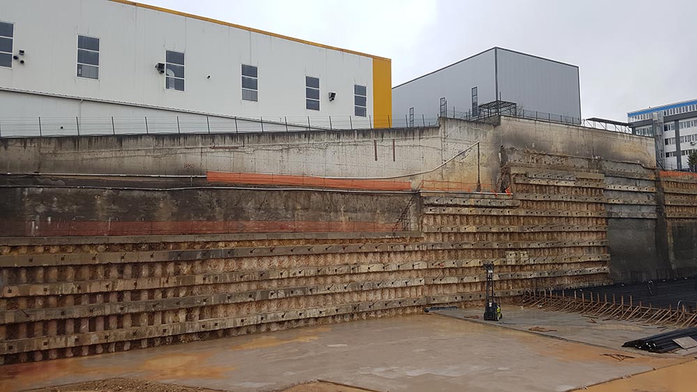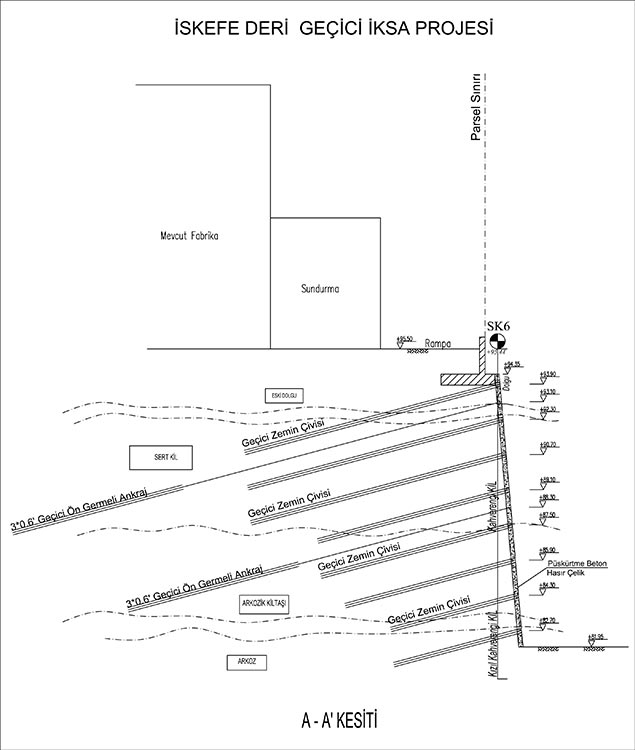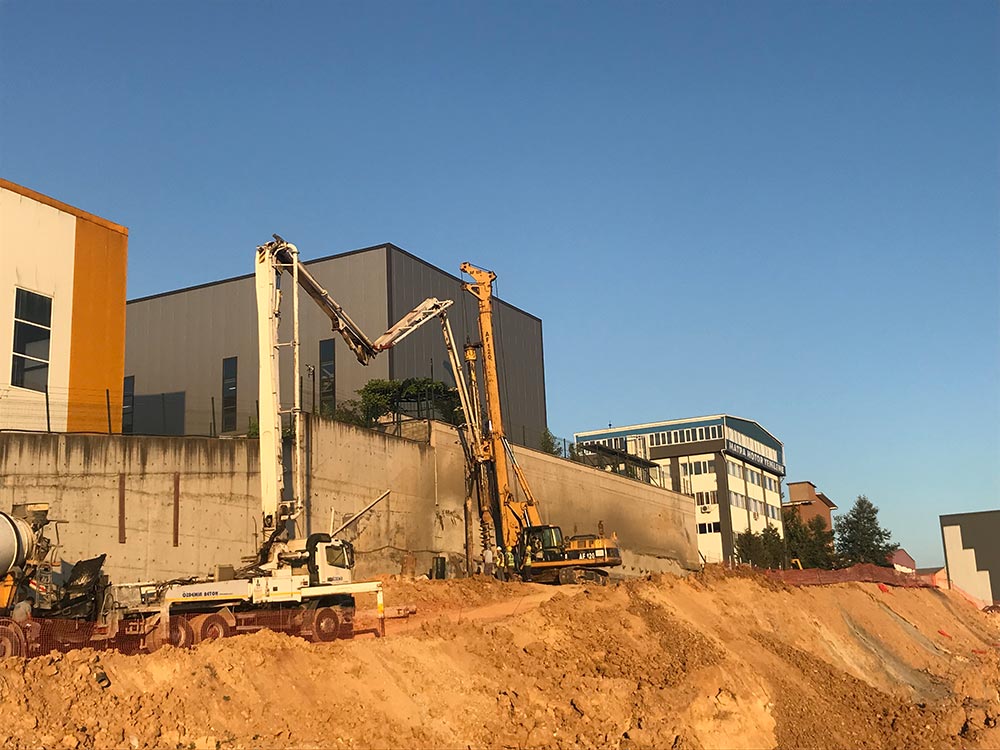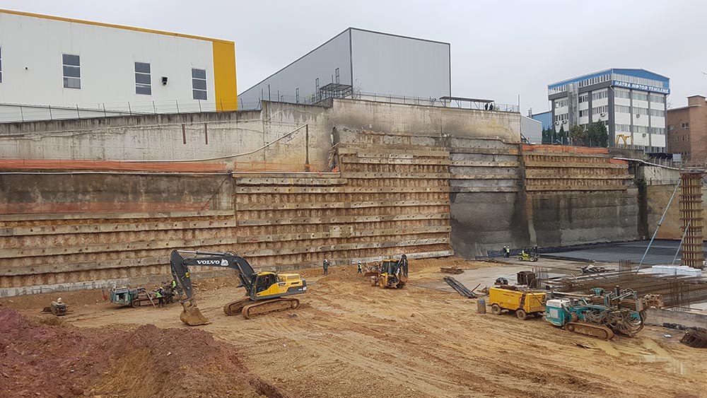 Shoring design and construction have been carried out in Istanbul Leather Organized Industrial Site (IDOSB) for the proposed Iskefe Deri factory. Within the scope of the project, a total of 800 m ø65 cm and a total of 1.800 m ø80 cm bored piles, a 8.600 m prestressed anchorage and a 1.300 sqm shotcrete area with soil nailing have been completed. During the construction process, horizontal displacements have been tracked with mirror reflectors and inclinometers.