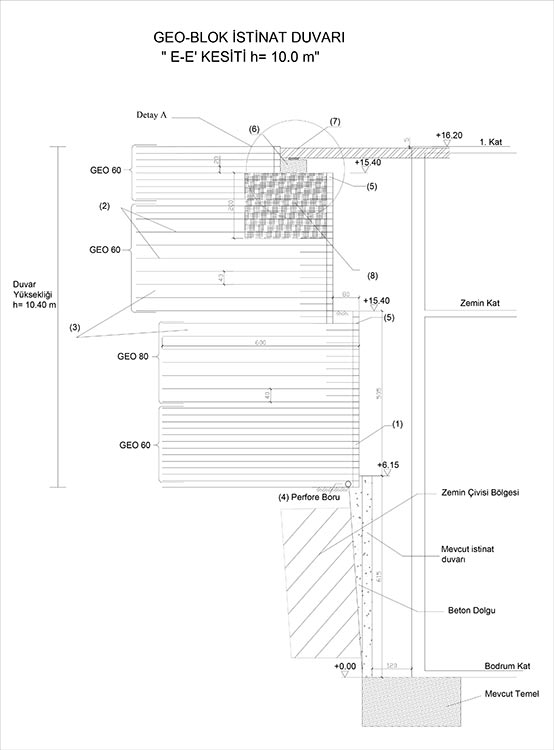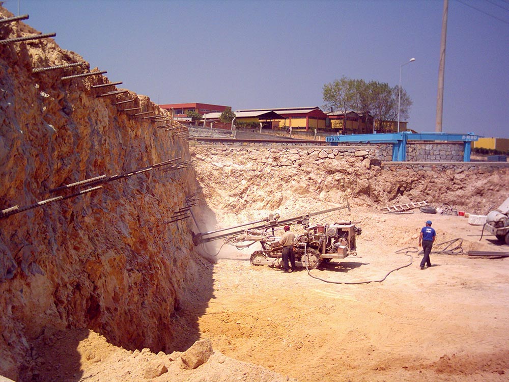 Construction of permanent passive anchorage and production of GEOBLOK type reinforced earth retaining walls on top of it. Construction of a total of 1.600 sqm surface, two-terraced GEOBLOK type reinforced earth wall and trailer ramp (wall height H= 10 m).