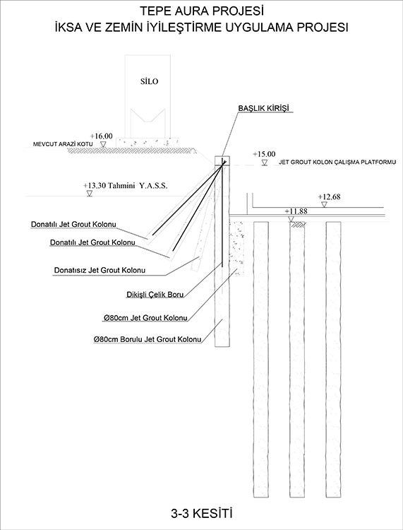 İstanbul ili, Çekmeköy ilçesinde yapılacak konut projesi kapsamında zemin güçlendirme ile iksa projesi ve imalatı yapılmıştır. İksa amaçlı yapılan toplam 12.640 m, ø80 cm çapında donatılı jet grout kolonları; ankraj ve eğik jet grout imalatları ile desteklenmiştir. Ayrıca zemin güçlendirme işleri kapsamında ø80 cm çapında toplam 42.100 m jet grout kolon imalatı gerçekleştirilmiştir. İmalatlar sonrası karot alma, süreklilik testi ile kalite kontrol deneyleri ve inklinometre yardımı ile deplasman kontrolleri yapılmıştır.