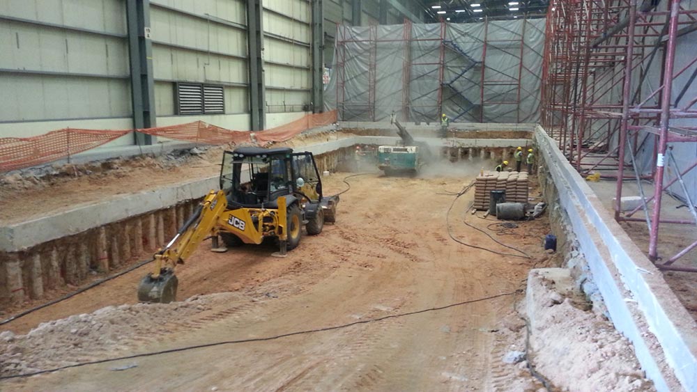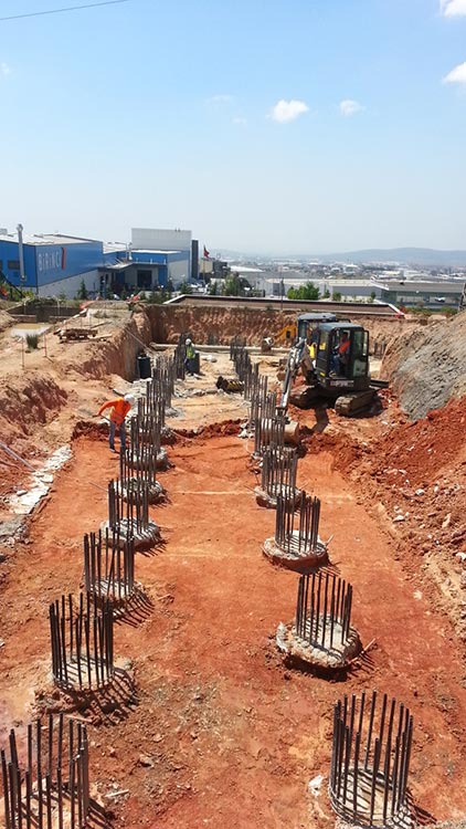 Ayrıca mevcut fabrika içinde 750 m, ø30 cm çaplı mini kazık ve 600 m öngermeli ankraj imalatı gerçekleştirilmiştir.
